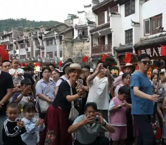 场景上新,体验丰富。今年国庆中秋假期,镇远县持续打造文旅新场景,文艺活动、夜间经济、非遗体验、红色文化游等多元业态协同发力,满足游客多元化、个性化的消费需求,展现出活力满满的蓬勃生机。“双节”期间,镇远全县接待游客31.12万人次,同比增长4.62%。多元产品解锁古城新体验假日期间,镇远打造出多元新颖的文旅产品,“新”成为镇远文旅市场活力的鲜明标识。在新大桥、祝圣桥等5处景观的“古今对比打卡点”,游客纷纷与印着百年前的老照片和现今图片的展板合影,在社交平台分享3处对比照,即可